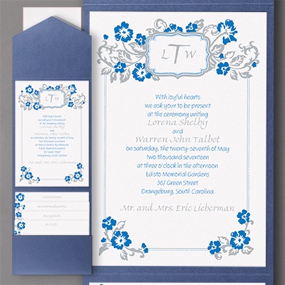 Now and Forever Wedding Invitations Silver with Ecru Shimmer Celebrate you love Now & Forever with this silver shimmer pocket and an ecru shimmer invitation tied with your choice of ribbon color. Invitations inform your guests of the event details and set the tone for your entire celebration. Mail invitations six weeks before the wedding and be sure to have them weighed at the post office to determine the proper postage. After personalizing your invitation, be sure to check out other coordinating items that are available to complete your wedding ensemble. Item Number RRN9628ES Dimensions: 6 1/4" x 6 1/4" Folded Includes: Printed invitation, wrap, ribbon color of your choice and blank double white or ecru envelopes Production Time: 2 Working Days Customer Assembly Required Featuring Black Raised Ink Lettering: CRS Verse: Custom Ribbon Color: Violet |